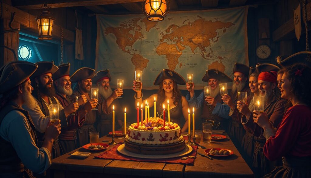 A collection of AI-generated artwork showcasing playful and imaginative depictions of pirates celebrating the season’s festivities.